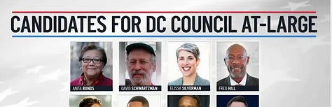 Our last significant time together was when he invited me to lunch to persuade me to run again. But the last time I saw him was at the memorial service for David Schwartzman. David was also a champion of workers and D.C. statehood—he was a forceful advocate for progressive taxation as well as an early voice warning about climate change. David was on the ballot with me in 2014, 2018, and by 2022, I think David at debates and forums was a better advocate for me than I was for myself.